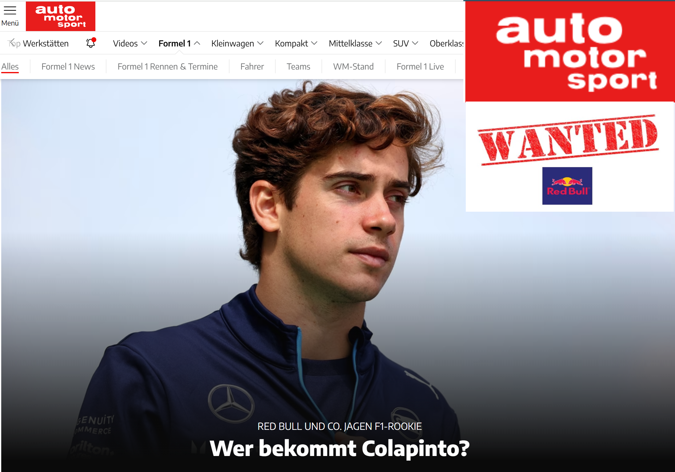 De hecho, el siempre muy serio Auto Motor Und Sport alemán ratifica el interés de la escuadra campeona del mundo en su nota de hoy "¿Quién se queda a Colapinto?", que firma su periodista de F1, Michael Schmidt. Cuyos párrafos completos, tradujimos para Uds.: