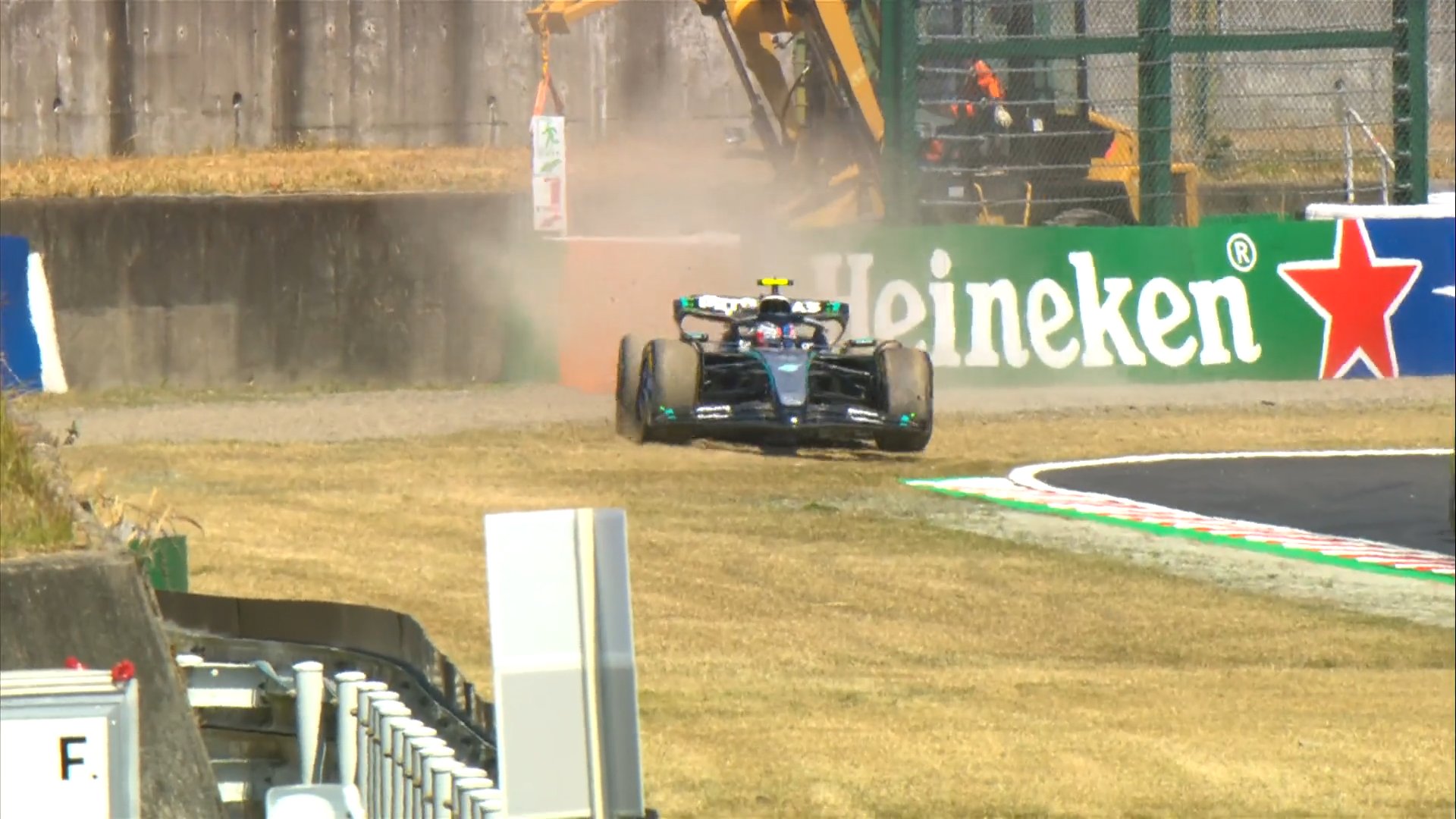 El británico comanda desde el principio en Suzuka, seguido por Russell de Mercedes y Leclerc de Ferrari. El japonés Tsunoda debutó con Red Bull. Colapinto hace 'guardia' en el simulador de Alpine.