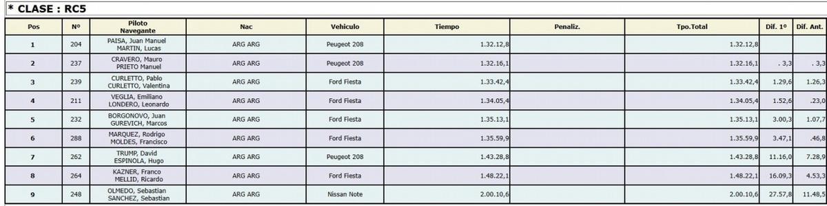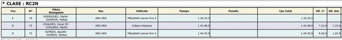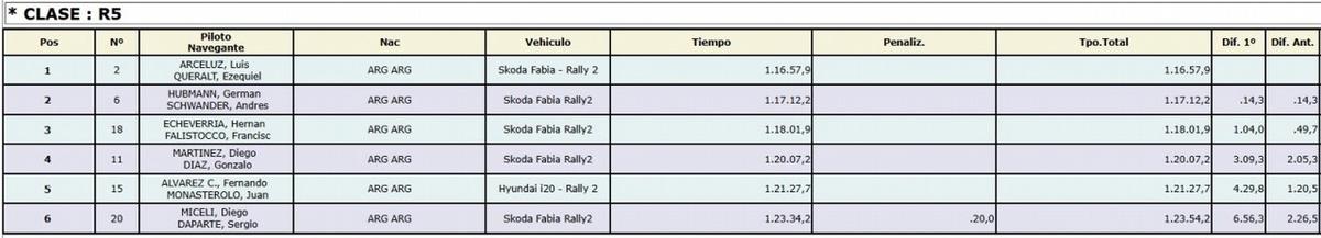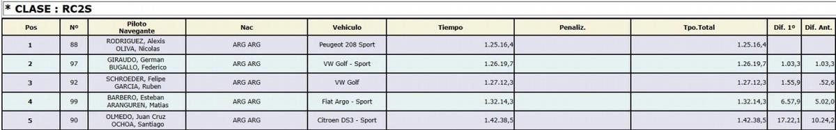 En el final del Rally Almafuerte-Río Tercero, la 9ª Fecha del Campeonato de Rally Cordobés 2025, así quedaron las posiciones en las diferentes categorías: