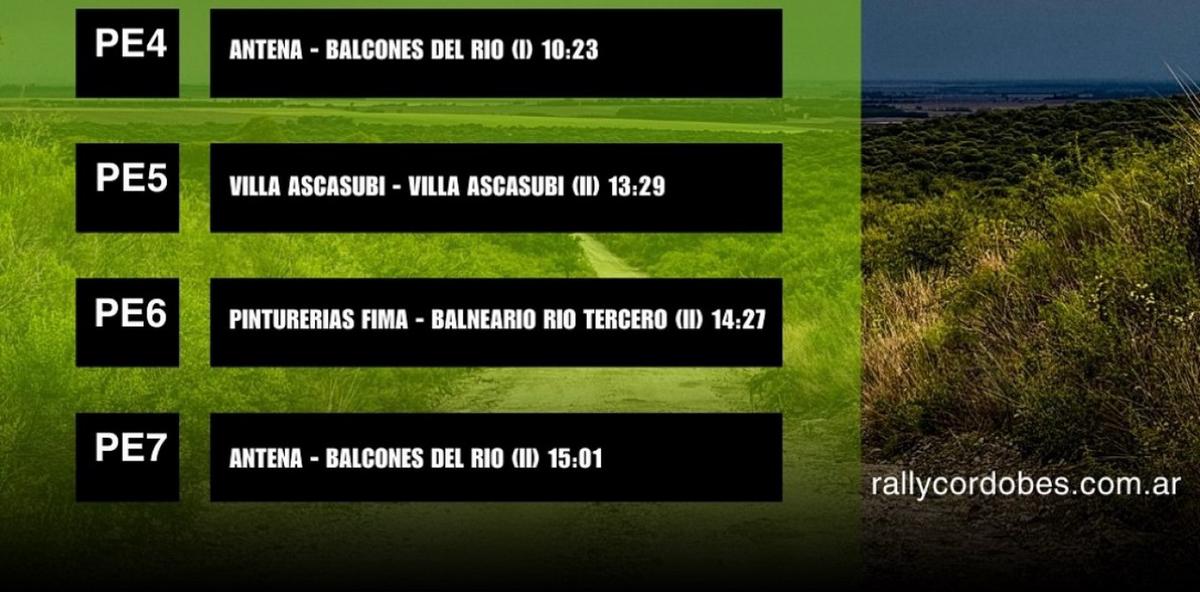Luego de las lluvias del viernes y del primer especial nocturno que se disputó en la ciudad de Río Tercero -con Hubmann como líder sobre Baldo +0.1s- el sol brilló plenamente en la mañana del sábado y los pilotos pudieron completar antes de la partida a las 8:54 horas, el reconocimiento del único tramo que no habían podido recorrer el viernes por la lluvia.