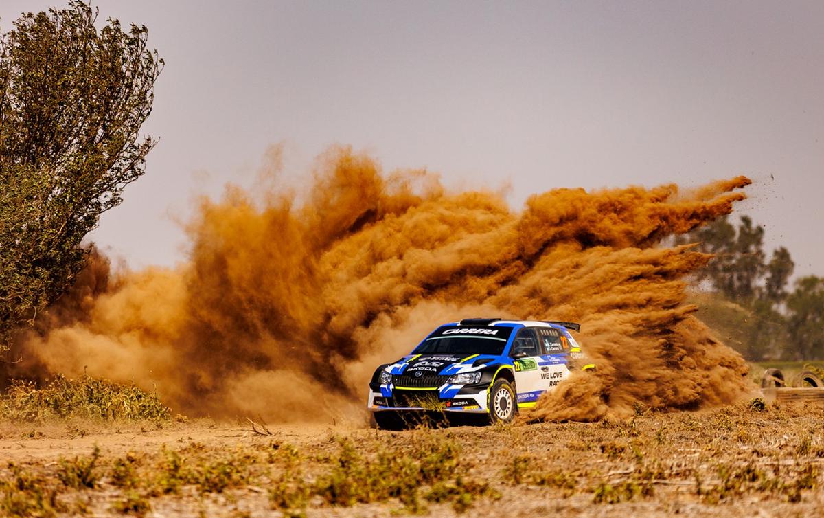 Toda la potencia del Skoda de Hubmann levantando tierra en Laguna Larga