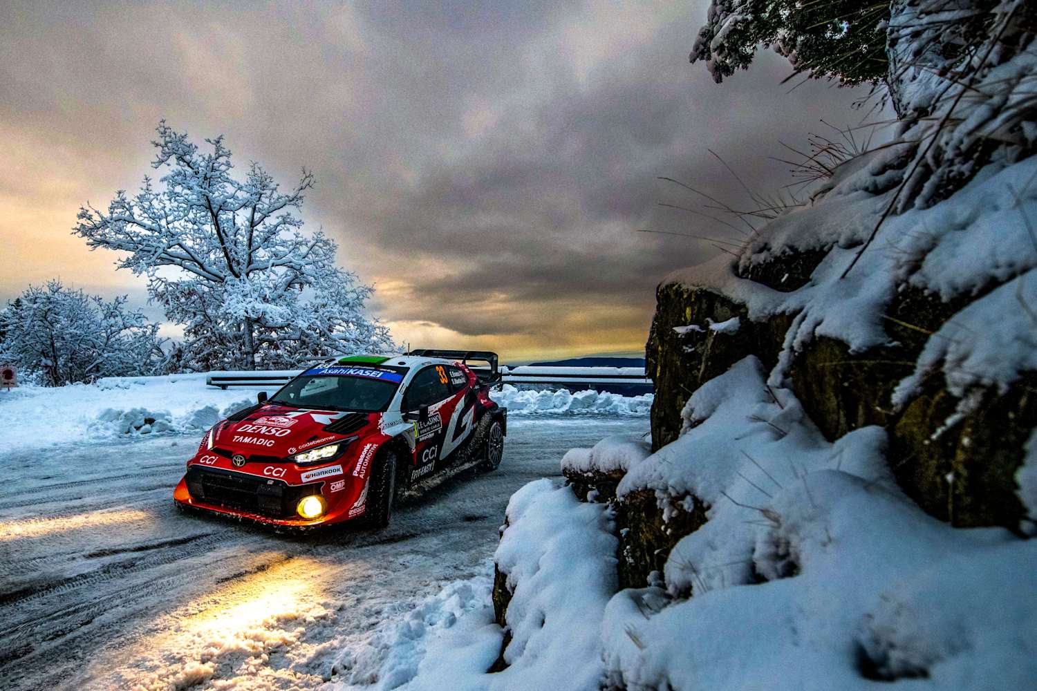 Tras comenzar el domingo con una ventaja aparentemente cómoda de más de un minuto, el camino de Solberg hacia la gloria se vio brevemente amenazado en la segunda especial de la mañana. En las horquillas heladas de La Bollène-Vésubie, se vio atrapado y se pasó de largo con su GR Yaris Rally1, quedando momentáneamente en dirección contraria. Se recuperó rápidamente, perdiendo solo unos segundos antes de recuperar la compostura en el Wolf Power Stage del Col de Turini.