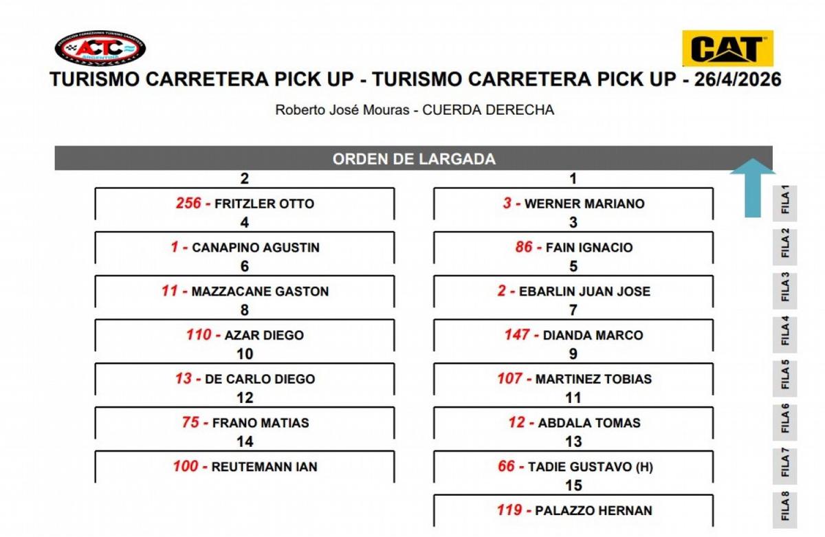 Mariano Werner y Otto Fritzler ganaron las series clasificatorias de la 3ª Fecha del Campeonato Argentino de TC Pick Up en el Autódromo Roberto Mouras de La Plata, Pcia. de Buenos Aires. El paranaense y su Foton se quedaron con la más rápida y partirán desde la 'pole' en la Final -20 vueltas o 40' minutos máximo- que se pondrá en marcha a las 13:10 hs., con el de San Miguel y su Ford Ranger al lado.