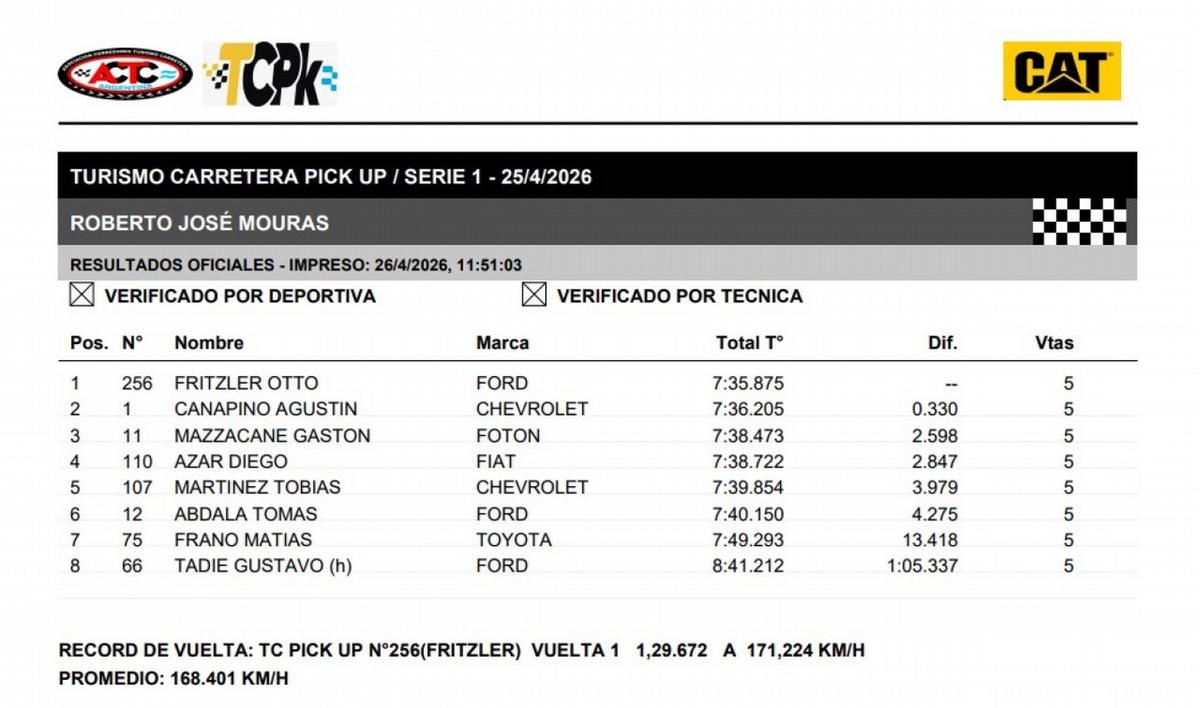 TC Pick Up: Werner y Fritzler se quedaron con las series en el Roberto Mouras