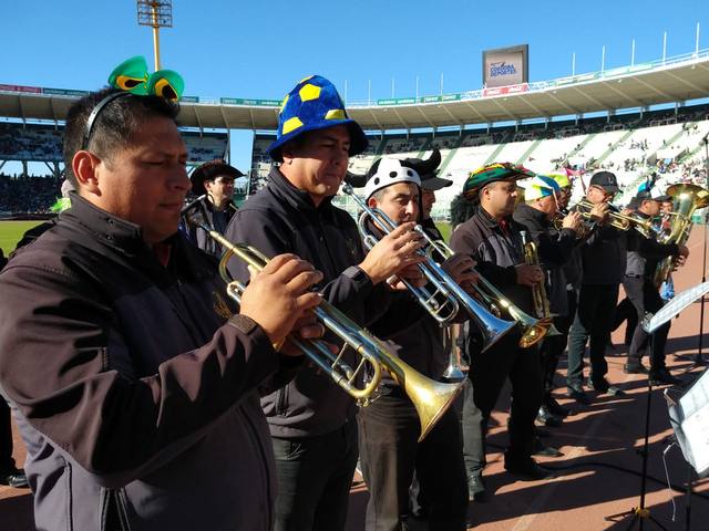 Los músicos se vistieron para la ocasión y animaron a los niños que se congregaron a la cancha. El conjunto sorprendió con grandes éxitos del momento, como "Cerveza", de Ráfaga.