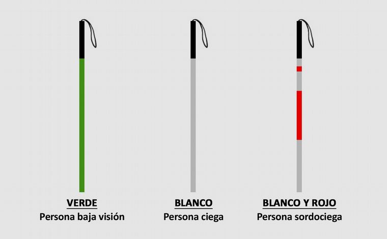 Mientras que el blanco identifica a las personas ciegas, el verde es para aquellos con "baja visión". Es decir que tienen dificultades y un campo visual reducido que les dificulta su movilidad.