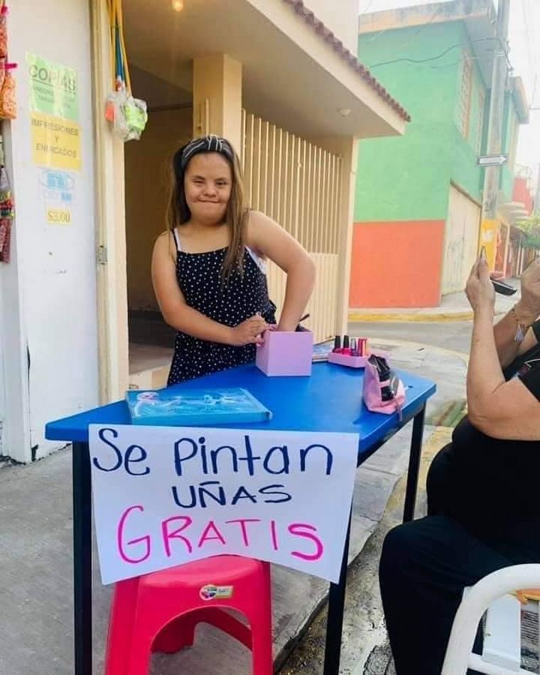 Las imágenes de Nicole, sentada en la vereda, con una mesa y un letrero que anunciaba que pintaría uñas gratis para mejorar su motricidad fina recorrieron varias ciudades del planeta.