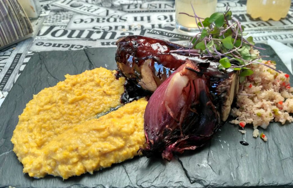 Lo acompaña un puré de choclo caliente que completa el sabor.