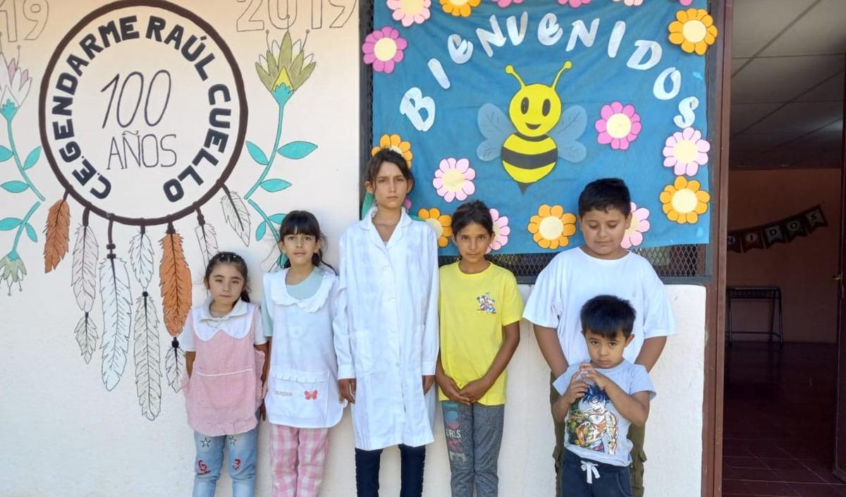 FOTO: Alumnos de la Escuela Provincial N° 162 Gendarme Raúl Cuello, de Las Juntas.