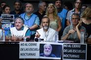 En la rueda de prensa que se realizó desde las 20,30 en la sede de la gremial de Bartolomé Mitre 1984, López indicó que las protestas consistían hoy en abrazos simbólicos, cese de tareas, acampes y pernoctadas", bajo la consigna "No al cierre de escuelas nocturnas".