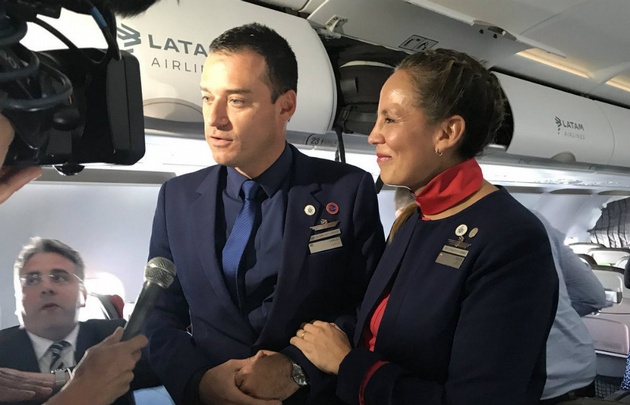 "En ese momento tuve cerca al dueño de la empresa (Latam), Ignacio Cueto, que aceptó ser testigo", contó Ciuffardi a los periodistas que viajaban con Francisco a bordo del avión.
