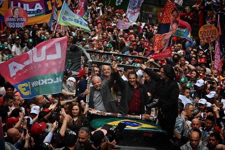 El dos veces presidente estuvo junto al candidato a gobernador de San Pablo de su alianza, Fernando Haddad, y su compañero de fórmula, Geraldo Alckmin, con quienes -a bordo de un automóvil- encabezó una caravana multitudinaria.