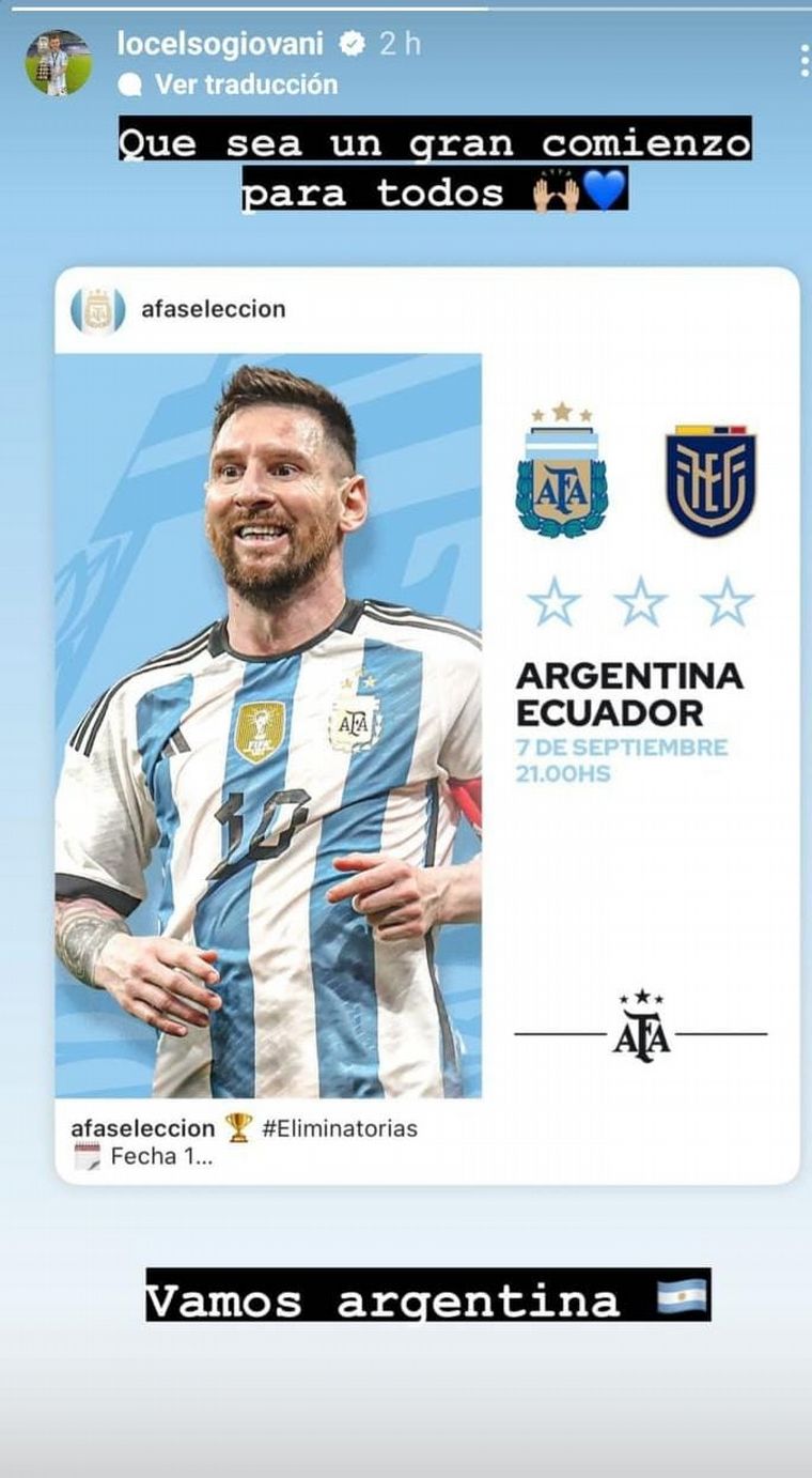 "Que sea un gran comienzo para todos. Vamos Argentina", escribió el rosarino en una historia en su cuenta de Instagram.