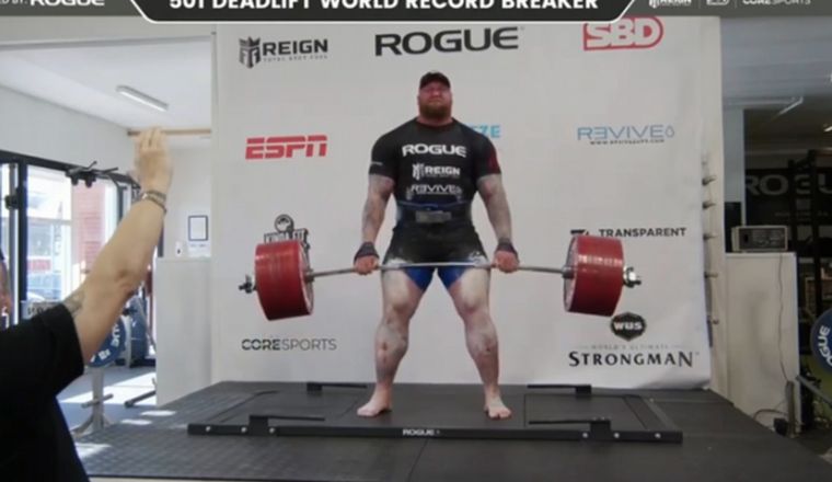 Debido a la pandemia del coronavirus, Bjornsson tuvo que lograr el récord en su gimnasio en Islandia. Tras dos levantamientos de calentamiento, pudo superar la marca y festejarlo como se ve en las imágenes que publicó.