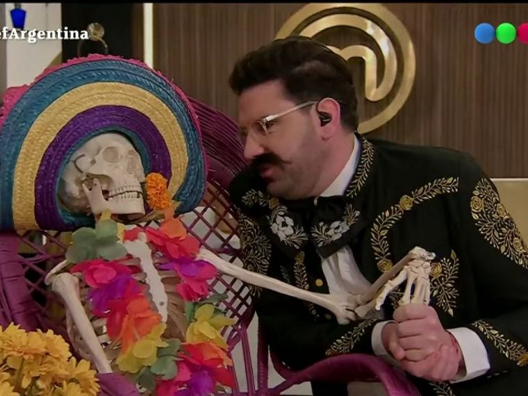 “Van re mal, yo hice todo lo posible con todos, y no están logrando llegar, le quedan diez minutos. Hay guacamoles negros, choclos quemados, tortillas chiquitas, todo mal, así que deseáles suerte, chau”, le dijo el pastelero y le dio un beso al esqueleto.