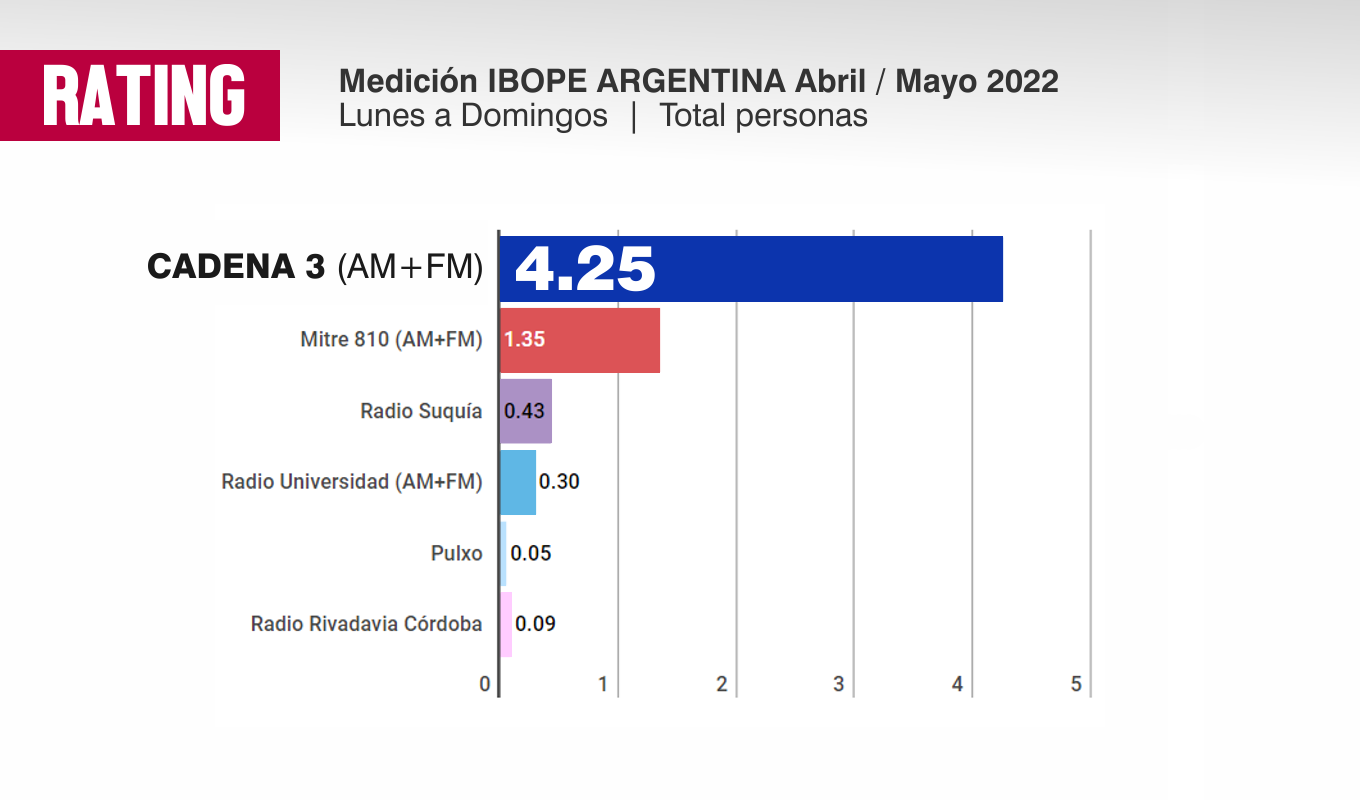 La tradicional radio de los cordobeses que va rumbo al centenario en su señal LV3 volvió a demostrar que tiene la mayor audiencia de Córdoba.