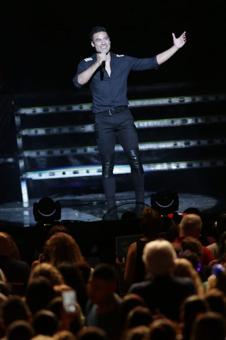 El cantante, actor y compositor mexicano hizo su ingreso al escenario con las luces apagadas y gritos de la audiencia en una calurosa bienvenida.
