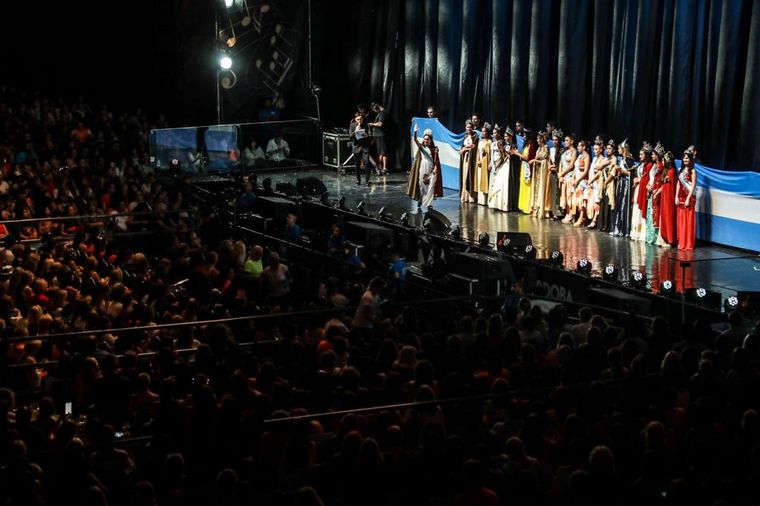 Luego del primer número, las 25 soberanas y reinas coronadas ingresaron para saludar en vísperas de su salida de la "realeza" del festival por la nueva elección anual.