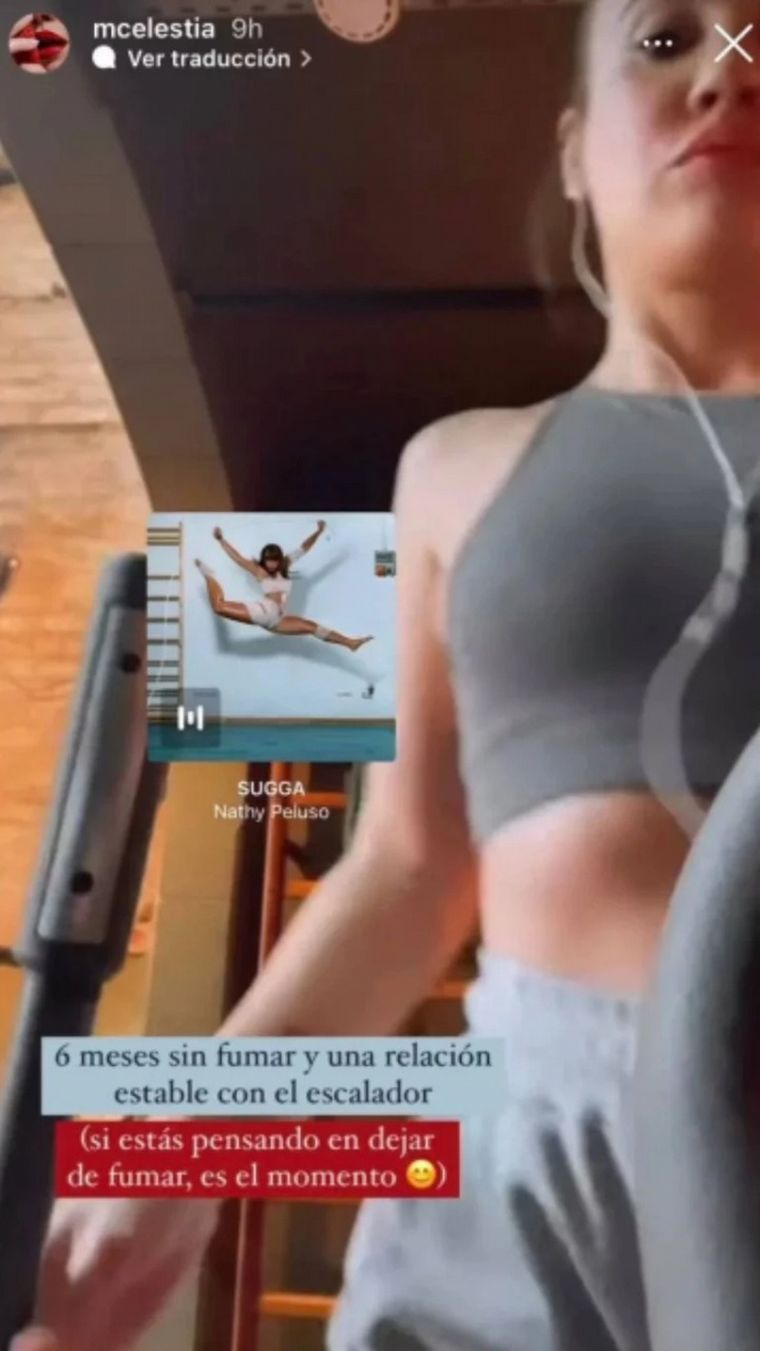 “6 meses sin fumar y en una relación estable con el escalador”, escribió en una historia de Instagram en la que se puede verla en el gimnasio.