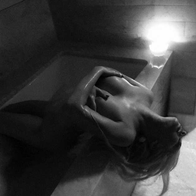 En las imágenes se ve a la artista que posa sin ropa, sumergida en una bañera, rodeada de velas.