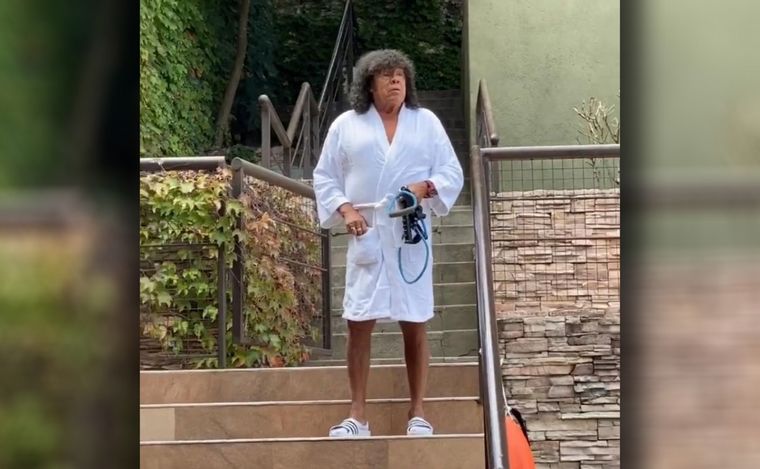 El encargado de publicar las imágenes fue "El Carli", su hijo que también es artista y amante del cuarteto. En unos videos subidos a las stories de Instagram, se puede apreciar al mandamás que se prepara para hacer ejercicios.