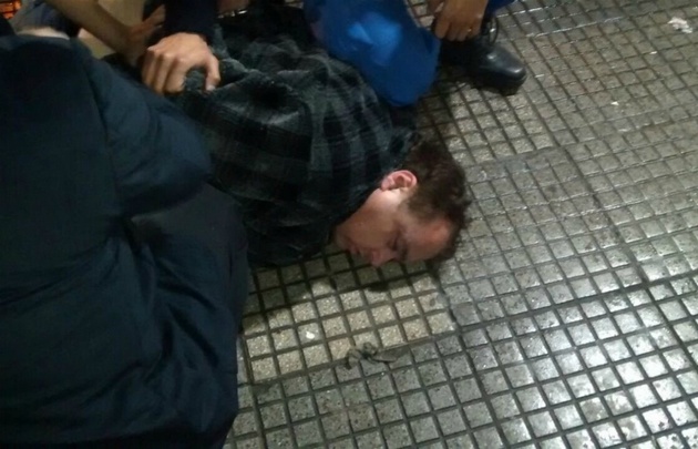 Las primeras imágenes que se conocieron a través de las redes sociales muestran a Santillán en el piso, boca abajo, y rodeado de policías y luego en otras que ya se lo llevan esposado.