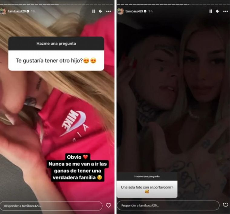 En sus historias de Instagram, la joven habilitó una caja de preguntas para que sus seguidores le preguntaran lo que quisieran. "¿Te gustaría volver a ser mamá?", le consultó una fan. A lo que ella respondió con un palito a su expareja y papá de Jamaica: "Obvio. Nunca se me van a ir las ganas de tener una verdadera familia".