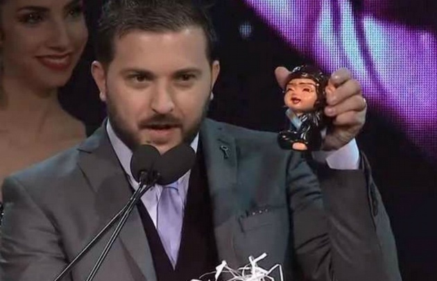 Durante el agradecimiento por el premio a Mejor Programa Periodístico a Intratables, el panelista tomó el micrófono y sacó una estatua de Cristina que obsequió a Lanata. El conductor se disgustó.