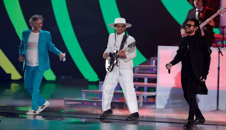 Robi Rosa con su guitarra toco el riff de "De Música Ligera" y le dio paso a Fito y a Cuevas, que interpretaron la canción que recibió el cierre de Martin, también conductor de la ceremonia que se realiza en el hotel y casino MGM Grand Arena de Las Vegas.