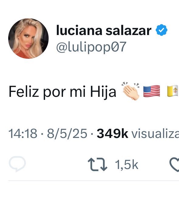 Salazar, al anunciar la elección, escribió en sus redes sociales: "Feliz por mi hija", seguido de un emoji de aplausos y la bandera estadounidense, haciendo referencia a su conexión familiar con la elección del nuevo Sumo Pontífice.
