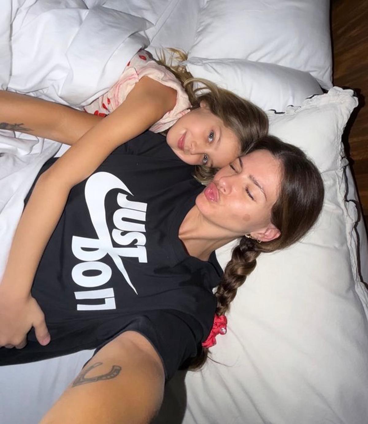 La China Suárez fue la primera en compartir su mensaje, en el que se puede ver a madre e hija recostadas en la cama, envueltas en sábanas blancas, en una escena de intimidad y tranquilidad.