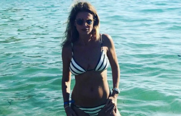 La actriz y conductora viajó a Europa de vacaciones y presumió su trabajado cuerpo en las playas de Ibiza.
