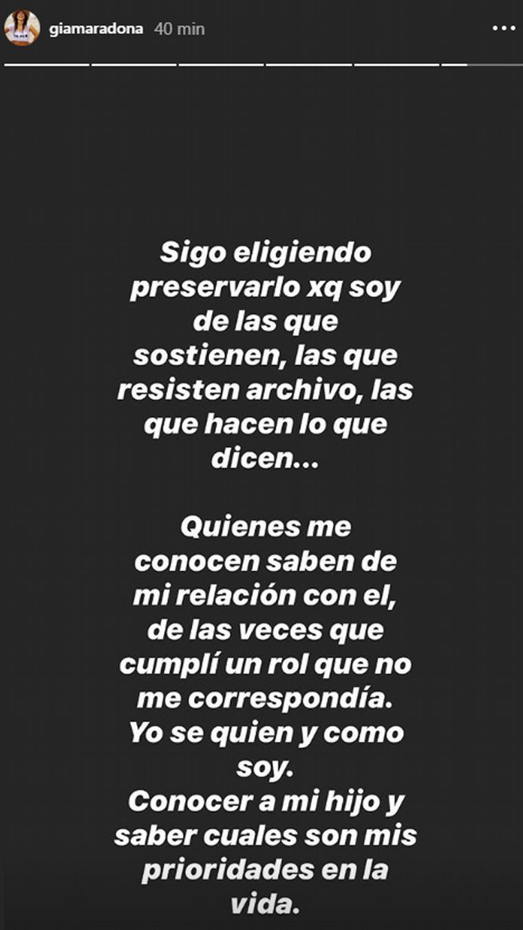 En respuesta al material que se mostró este viernes durante el programa Intrusos; Gianinna Maradona publicó un mensaje a través de las historias de Instagram.