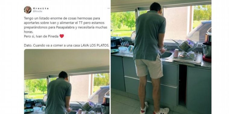 ’'Tengo un listado enorme de cosas hermosas para aportarles sobre Iván y alimentar el TT pero estamos preparándonos para Pasapalabra y necesitaría muchas horas. Pero sí, Iván de Pineda’', escribió la joven junto a una foto del conductor y añadió: "Cuando va a comer a una casa LAVA LOS PLATOS".