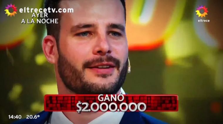 Y se mostró agradecido con el programa. “Así que desde ya quiero agradecerles a todos y también desearle mucha suerte al resto de los competidores, que sé que lo van a hacer bien”, dijo el frustrado participante por el tercer millón de pesos.