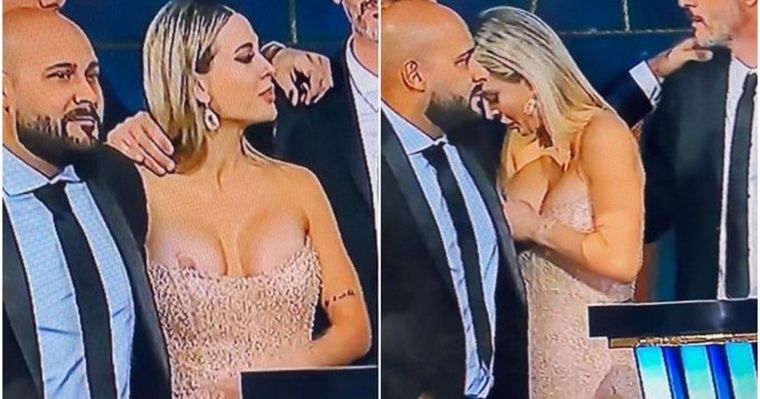 En medio de este momento tan conmovedor, la conductora del programa protagonizó un desliz con su vestido que causó que se vuelva tendencia en Twitter, ya que los usuarios detectaron rápidamente que su escote se había caído y se notaban un poco sus pechos.