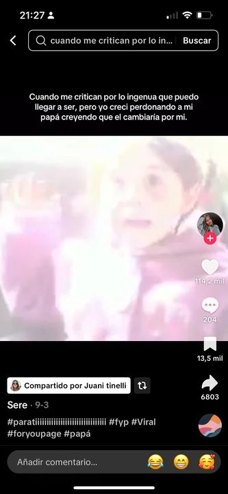 En otro posteo que difundió, hace referencia a problemas familiares no resueltos: "Cuando me critican por lo ingenua que puedo llegar a ser, pero yo crecí perdonando a mi papá creyendo que él cambiaría por mí".