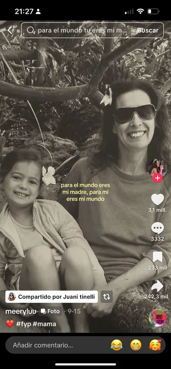 En paralelo a su enojo con su padre, destacó el gran apoyo que recibe de parte de su madre: "Para el mundo eres mi madre, para mí eres mi mundo".