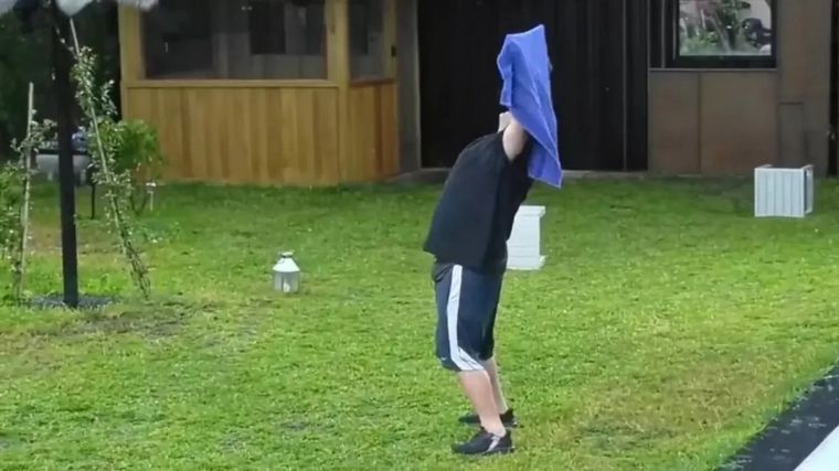 “Hay que ver el lado positivo, no hace falta lavar el piso”, decía el participante que poco después salió al patio a disfrutar del agua caer.