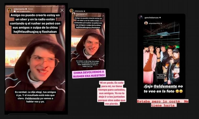 Y aunque parecía que con el paso de los días se había aplacado el revuelo que generaron en las redes, "El Demente" volvió a poner el tema en un lugar central. "Amigo, no puedo creerlo estoy en un Uber y en la radio están diciendo que el Rusher se peleó con sus amigos por culpa de que la China, qué flasheaban", escribió.