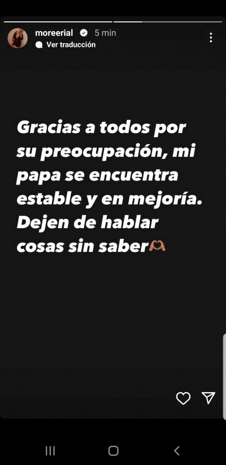 La emoción de Morena Rial en redes sociales por la salud de su padre