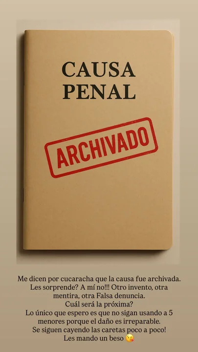 Si bien celebró que la Justicia desestimara la denuncia, lamentó que su ex pareja busque perjudicarlo utilizando a sus hijos: "¿Cuál será la próxima? Lo único que espero es que no sigan usando a 5 menores porque el daño es irreparable. Se siguen cayendo las caretas poco a poco! Les mando un beso”.