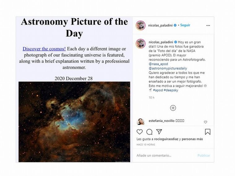 Se trata de Nicolás Paladini quien recibió dicho reconocimiento debido a una astrofotografía impactante que compartió en sus redes. Mirá de qué se trata.