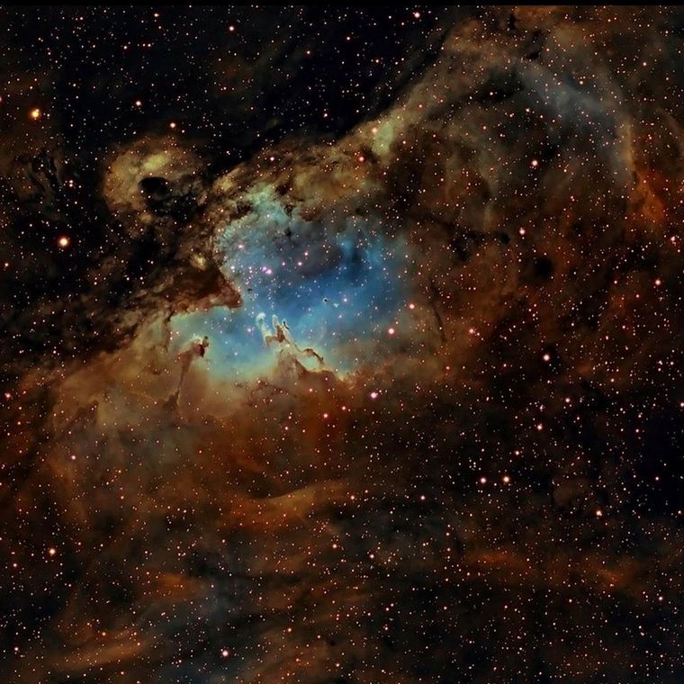 Luego, para que sus seguidores comprendieran de qué trataba lo que se visualizaba en la foto, explicó: "Es una nebulosa de emisión que rodea un cúmulo abierto. Esta´ ubicada en la constelación Serpens a unos 7.000 años luz de distancia de la Tierra. La nebulosa del Águila es parte de una nebulosa de emisión con aproximadamente 8.100 estrellas, que están mayormente concentradas en la zona al noroeste de los pilares".