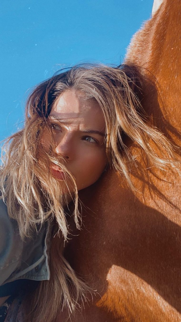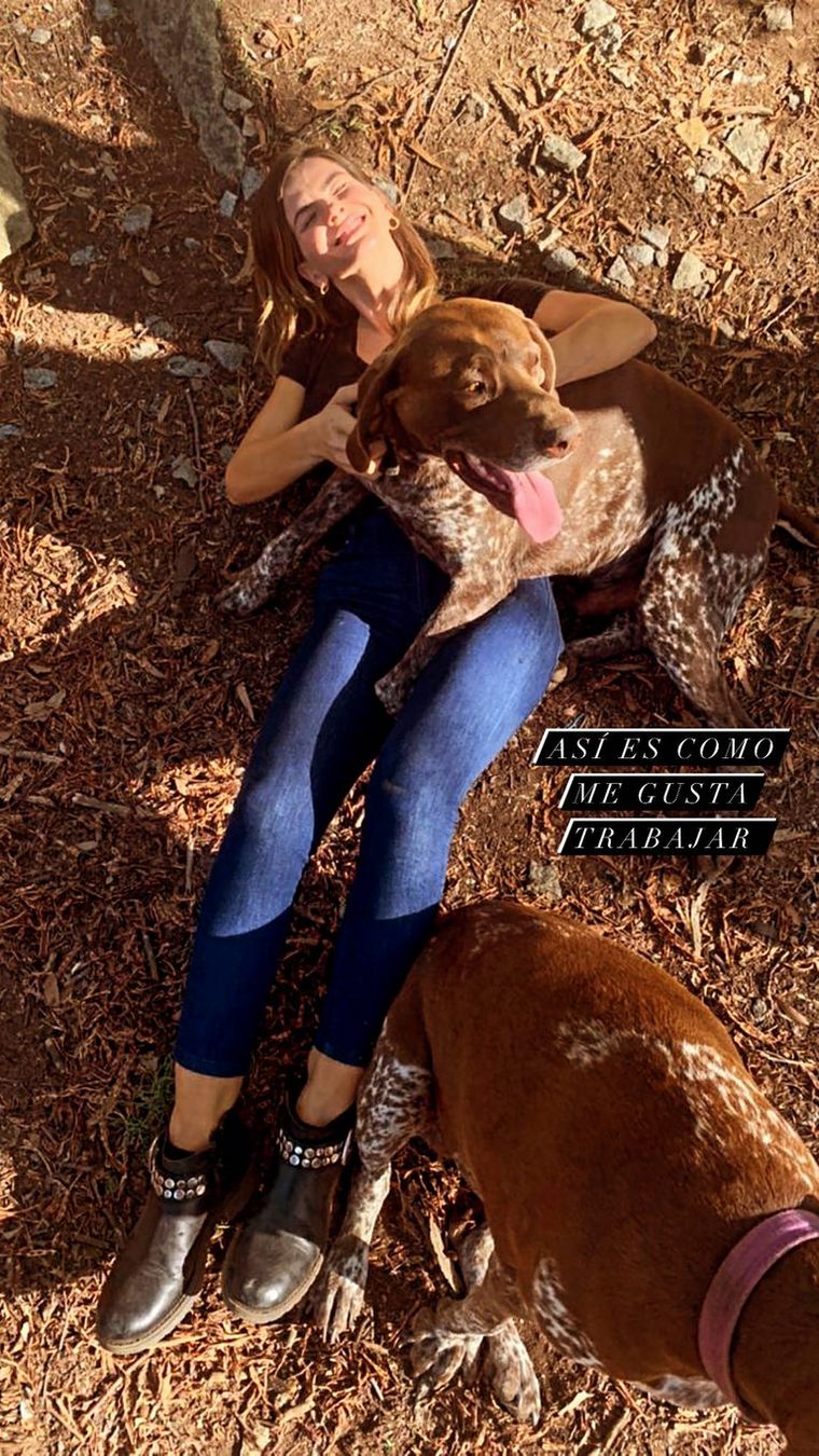 En una secuencia de fotos la joven se muestra rodeada de perros y sonriente. “Así es como me gusta trabajar”, escribió. En otra se la ve sentada sobre una roca, con el paisaje serrano de fondo.