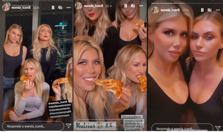 Sin embargo, la blonda también sabe divertirse, ya que en una de las historias se la ve compartiendo pizzas junto a las modelos se mostraron junto a la leyenda “Rubias” y una bandera de Italia, agregadas por la empresaria a la hora de publicarla.