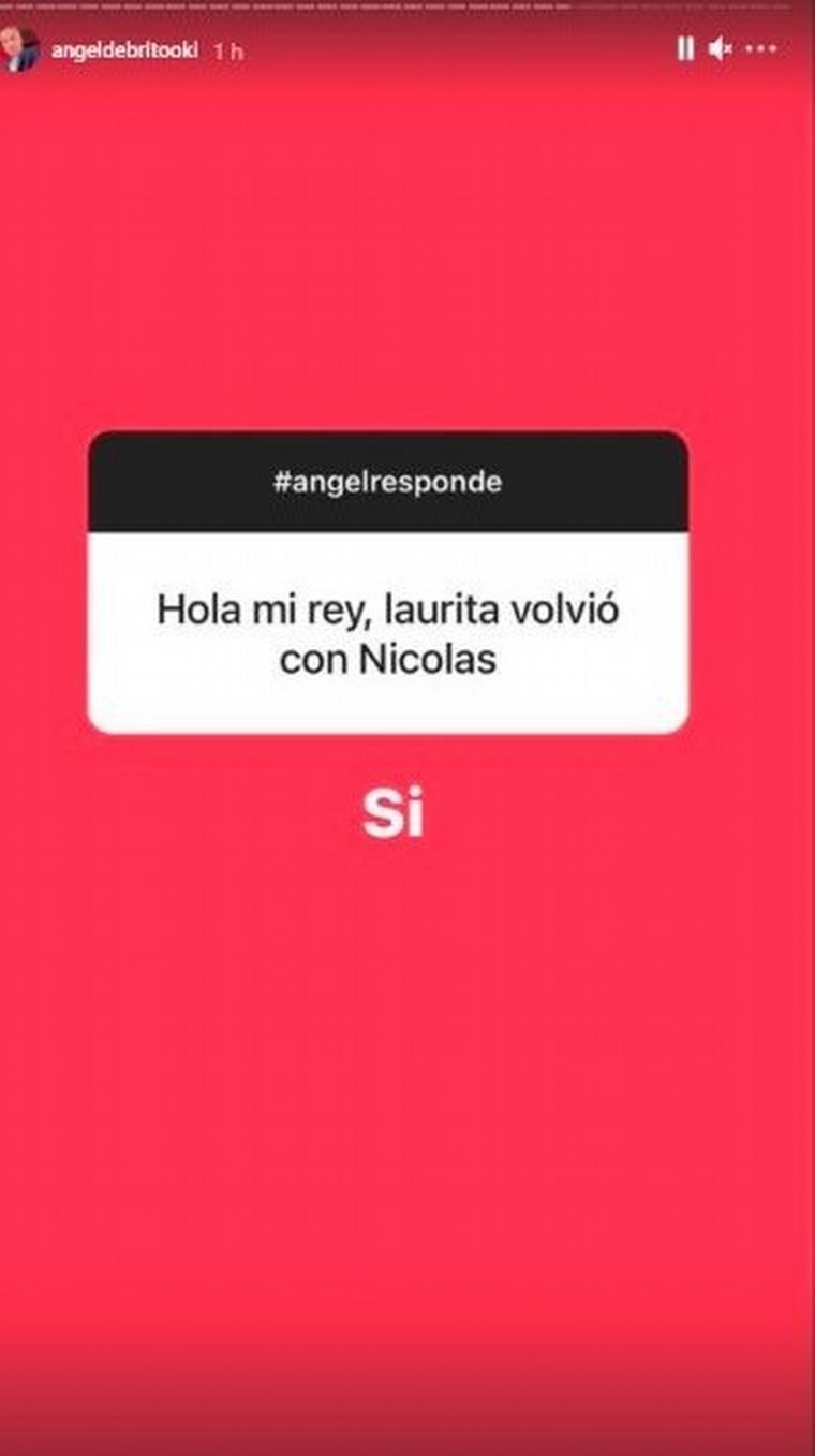"Hola, mi rey, ¿Laurita volvió con Cabré?", le preguntó una seguidora en Instagram, y De Brito asintió: "Si".