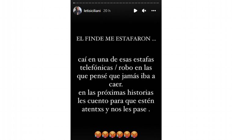La actriz Leticia Siciliani fue víctima de una estafa telefónica al intentar realizar un trámite bancario y lo contó en su cuenta de Instagram para alertar a sus seguidores.