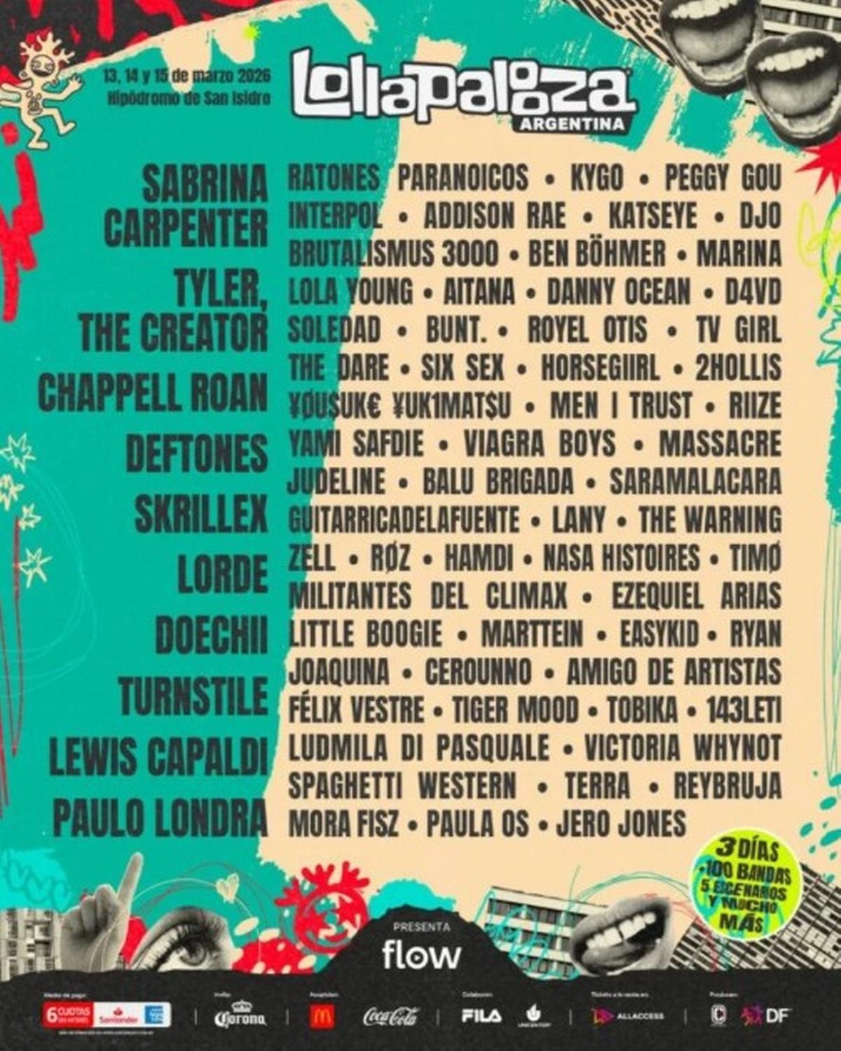 Del 13 al 15 de marzo de 2026, el Hipódromo de San Isidro se convertirá en el escenario de Lollapalooza Argentina, un festival que promete tres jornadas únicas con un line up histórico. Encabezarán el evento grandes nombres como Sabrina Carpenter, Tyler, The Creator y Chappell Roan, junto a otros artistas de renombre como Deftones, Skrillex, Lorde, Doechii, Turnstile, Lewis Capaldi y Paulo Londra.