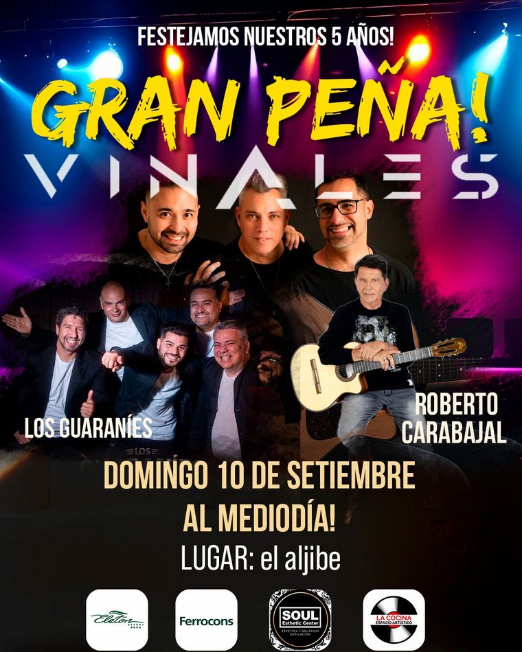 Los Guaraníes, Roberto Carabajal y Vinales estarán presentes en la Gran Peña en Córdoba, para conmemorar el aniversario de los cinco años del espectáculo.